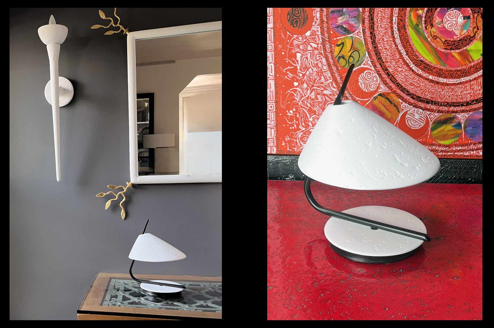 The Plaster of Paris Passy Table Lamp is a striking piece that blends sculptural elegance with refined materials. With its plaster diffuser, it creates a perfect small scale lamp for intimate spaces. Light uses 1 candelabra based bulb, ( max wattage 40 )